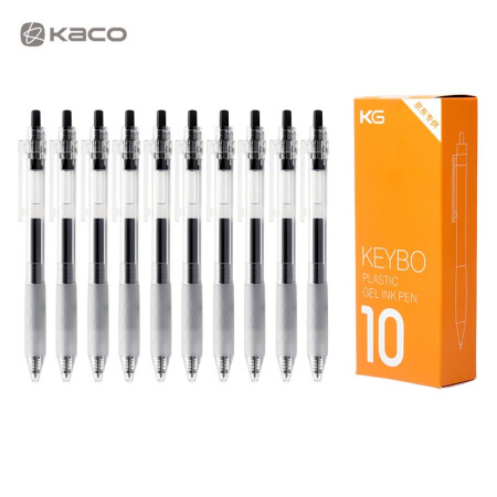 • KACO Keybo凯宝0.5按动中性笔 透明笔杆办公签字笔学生子弹头水笔办公学习用品 黑色 10支