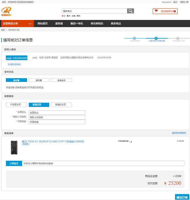 第三步:填写订单,新增收货地址,把地址填入。支付方式选择后付费还是预付费。发票抬头写入发票信息。
